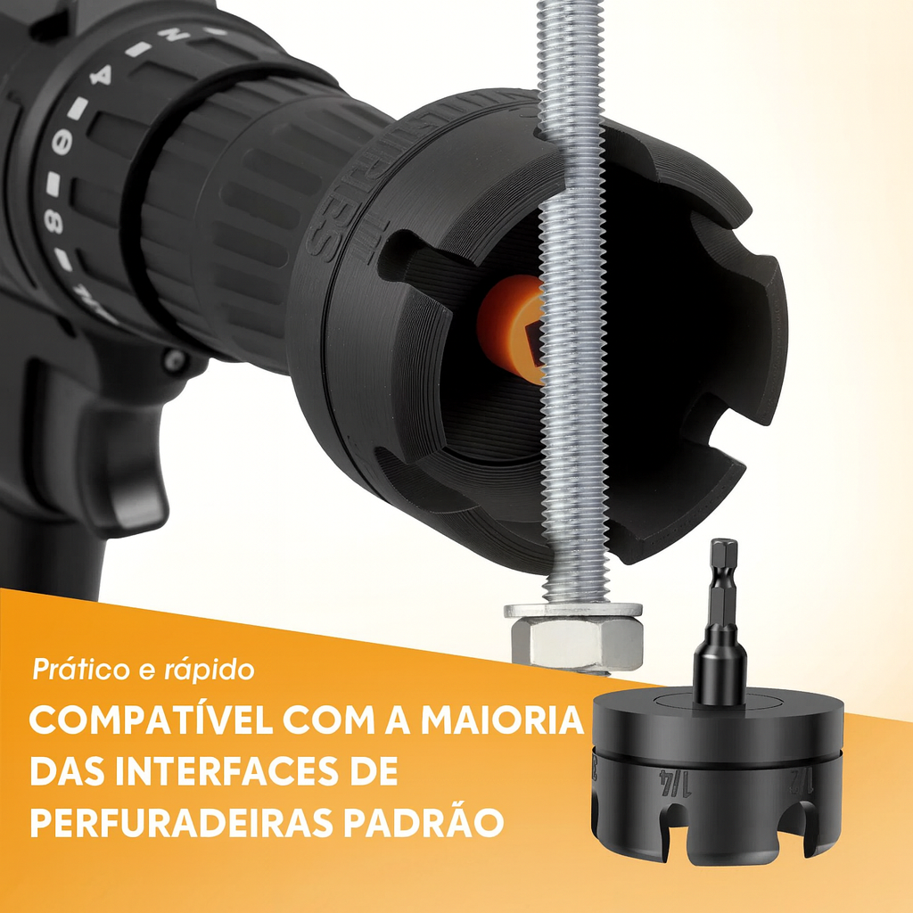 Acessório de Broca com Zíper de Porca – Aperto Rápido e Eficiente